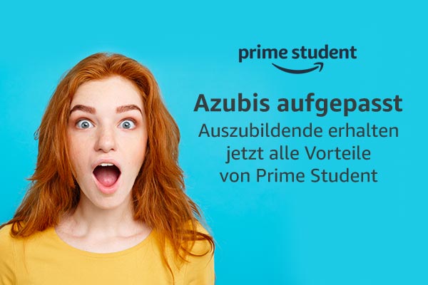 Prime Student jetzt auch für Auszubildende! Als volljähriger Azubi kannst du mit der AzubiCard unter amazon.de/azubicard Mitglied bei Prime Student werden. 6 Monate ohne Kosten für dich. Anschließend 50% Rabatt auf Prime. Jederzeit kündbar.
